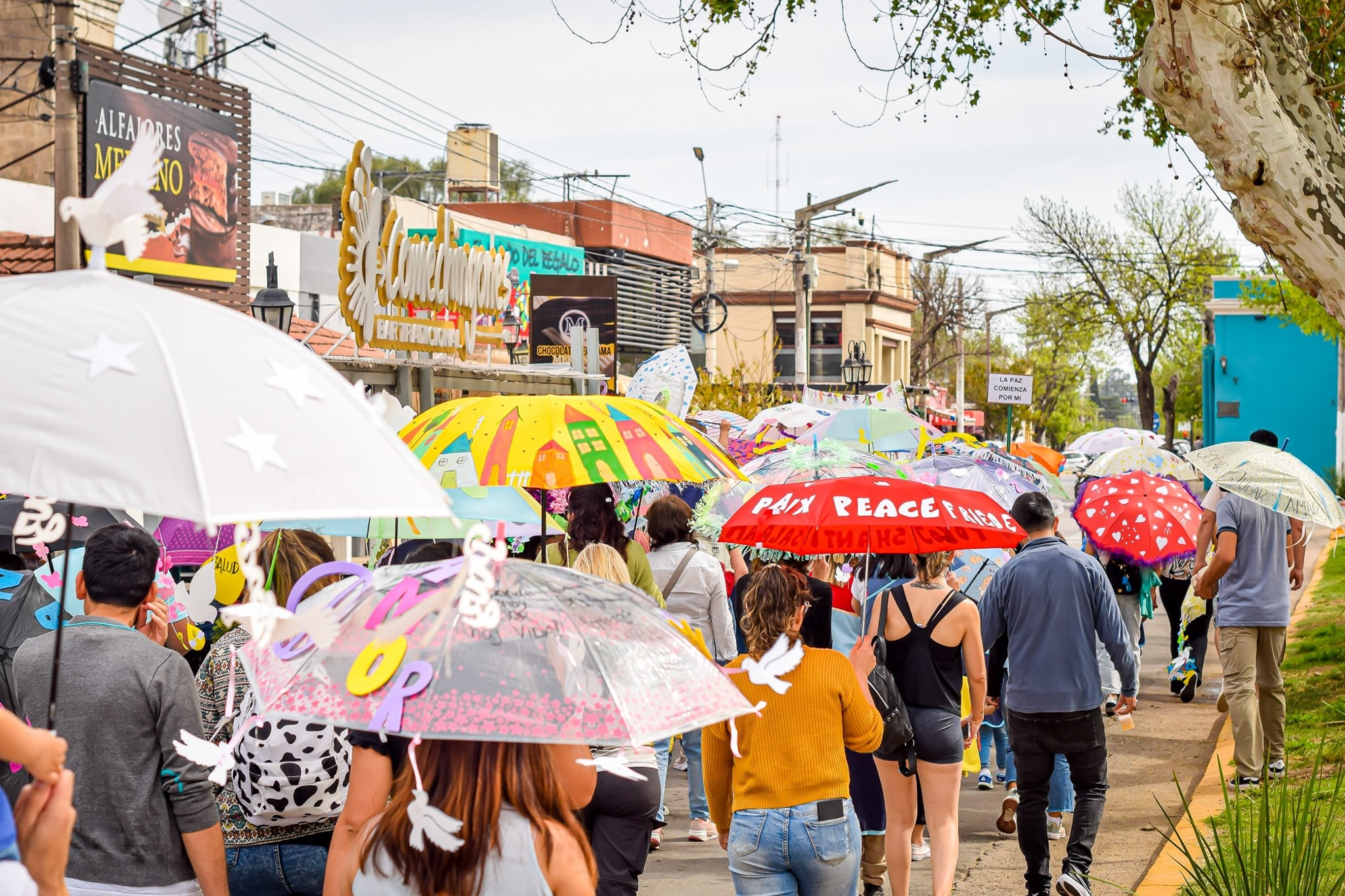 Cada año, a fines de septiembre se realiza una nueva edición de la caminata simbólica ‘Paraguas por la Paz’ en distintas partes del mundo. En la Villa de Merlo se realizó el viernes 26 cerca del mediodía. Es una actividad que busca fomentar una cultura de paz a través del arte y la expresión simbólica.